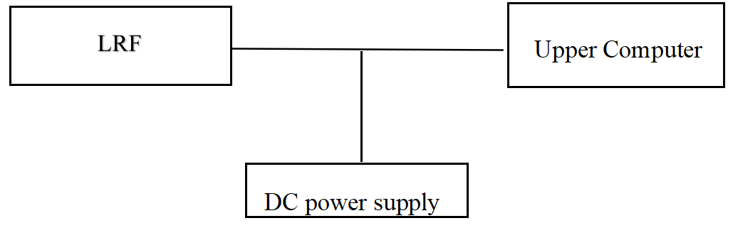 図に示すように、レーザー距離計、デバッグ ケーブル、DC 電源、ホスト コンピューターを接続します。