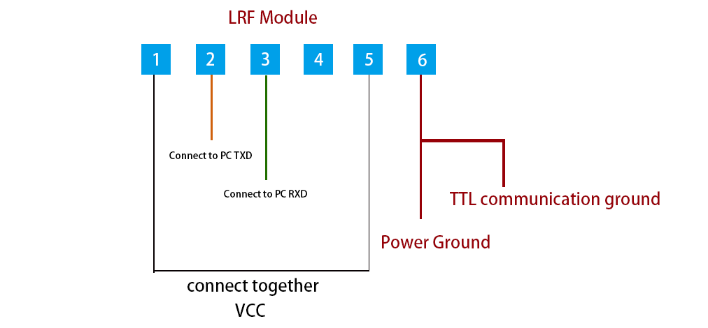 d) 上部コンピュータ端は、0.8WTB-6Y-2 コネクタを介して距離測定機端 0.8WTB-6AB-01 コネクタ (Yueqing Huabao) との架橋テストを実現します。距離計側の電源および通信ポートのピンの定義を表 1 に示し、コネクタのピンの位置を図 3 に示します。